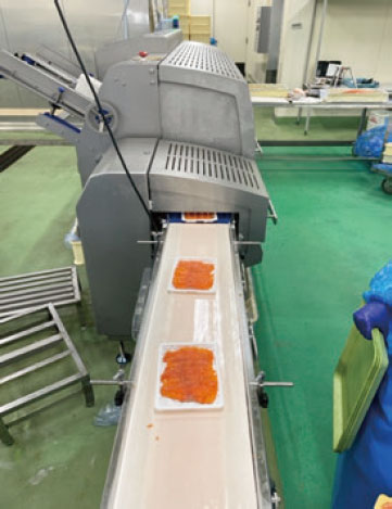 海外産のサケ・マス類はエラや内臓が除去された冷凍のドレスやフィレの状態で輸入されますが、国産は鮮魚の状態で買い付けることから、新たに生鮮原材料を加工するためのチルドスライサー及びガス置換真空包装機を導入し、スモーク、スライス、包装まで一貫してチルド処理出来る体制を構築するとともに、生鮮原材料の高鮮度加工による新商品開発を進め、販路の拡大を図りました。