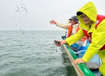 ![]() ハマグリの種苗放流 |