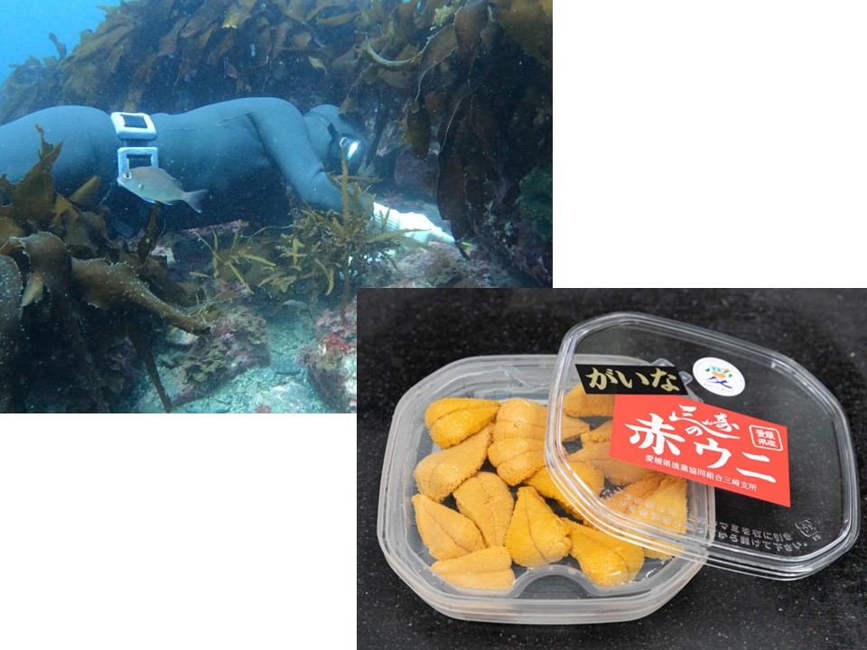 ![]() 海士の素潜りの様子と 三崎の赤ウニ がいな |