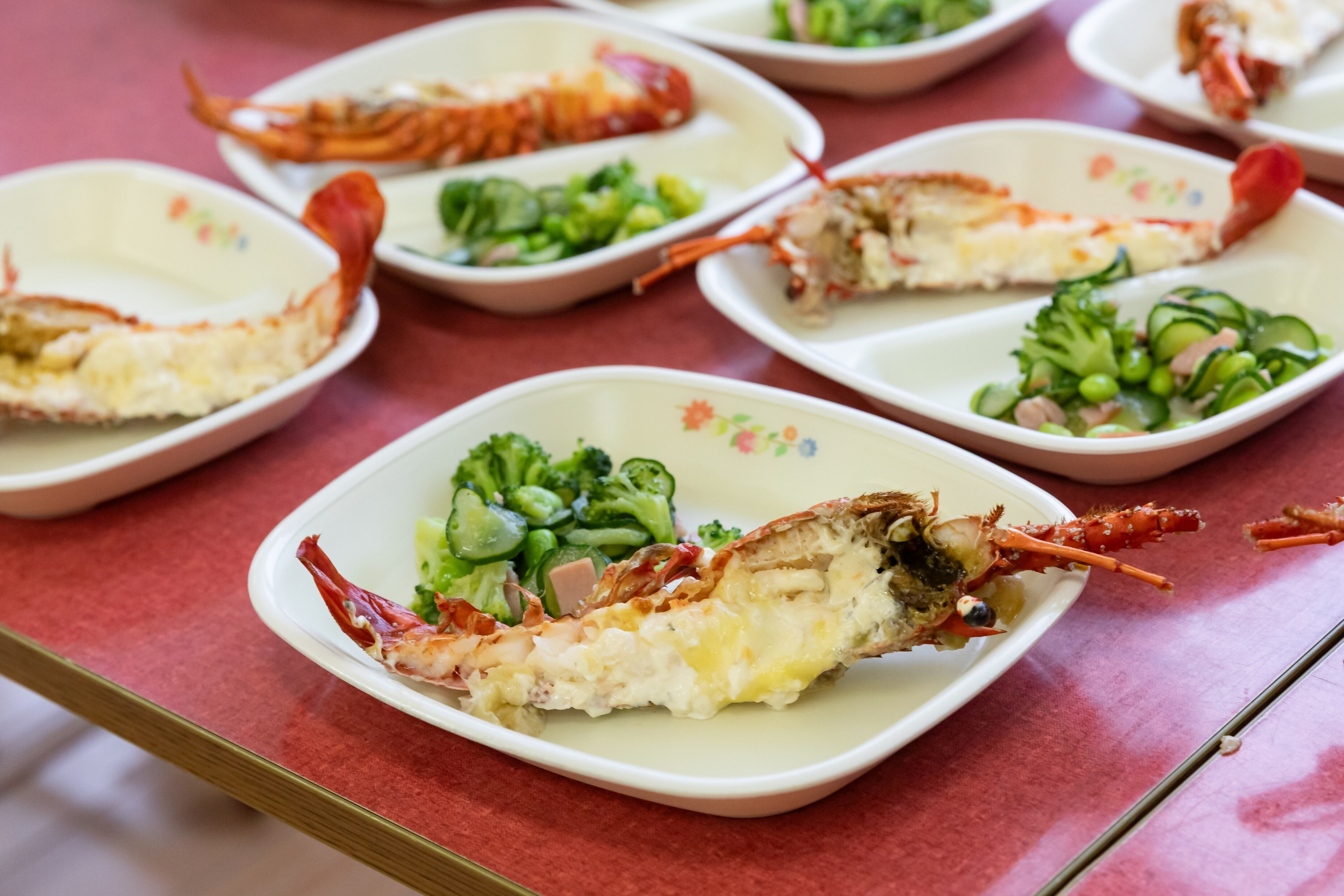 ![]() 学校給食で提供された イセエビ料理 |