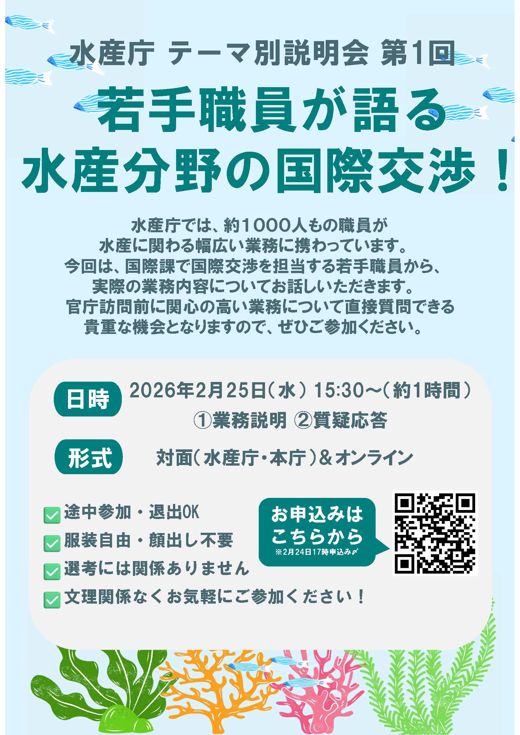 令和7年度水産庁テーマ別説明会(1)「国際交渉」2月25日(水曜日)開催