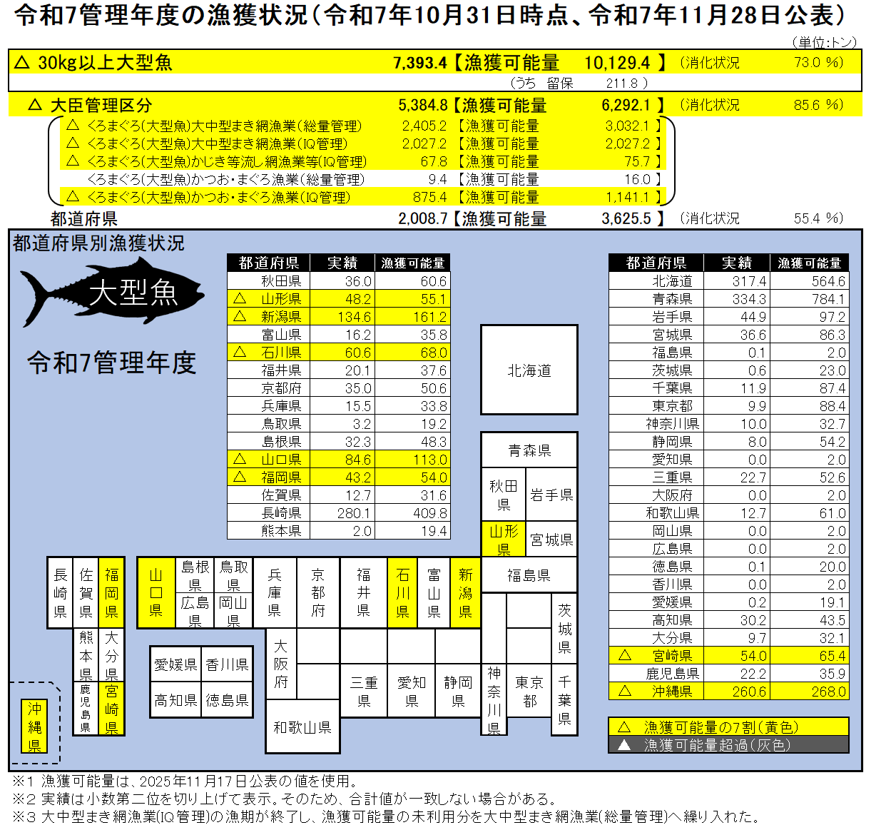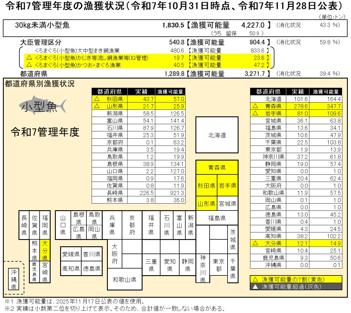 太平洋クロマグロの漁獲状況について~令和7年11月28日更新~